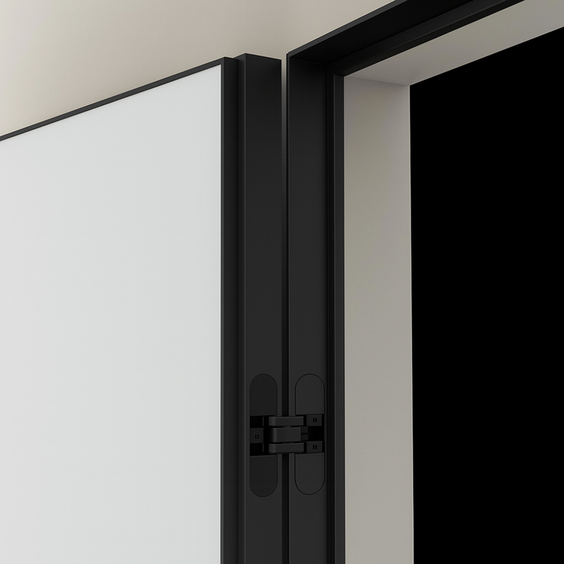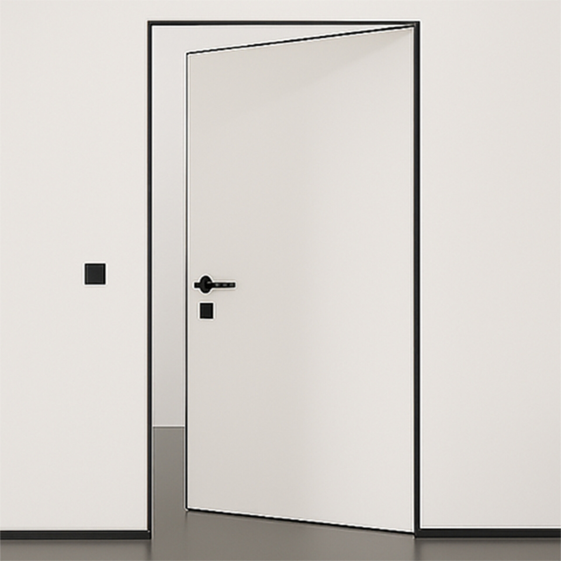 Скрытая межкомнатная дверь InWall Doors Invisible Revers полотно под покраску, кромка алюминиевая черная - современное решение для оформления пространства в минималистичном стиле.