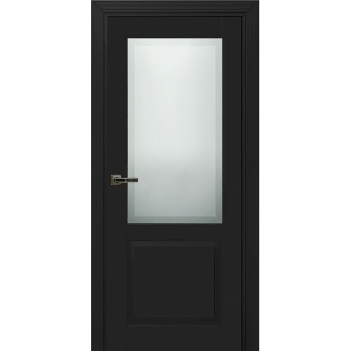 Межкомнатная дверь Краснодеревщик 732.1 (эмаль черная по MDF)стекло МатПсевдофацет без фурнитуры