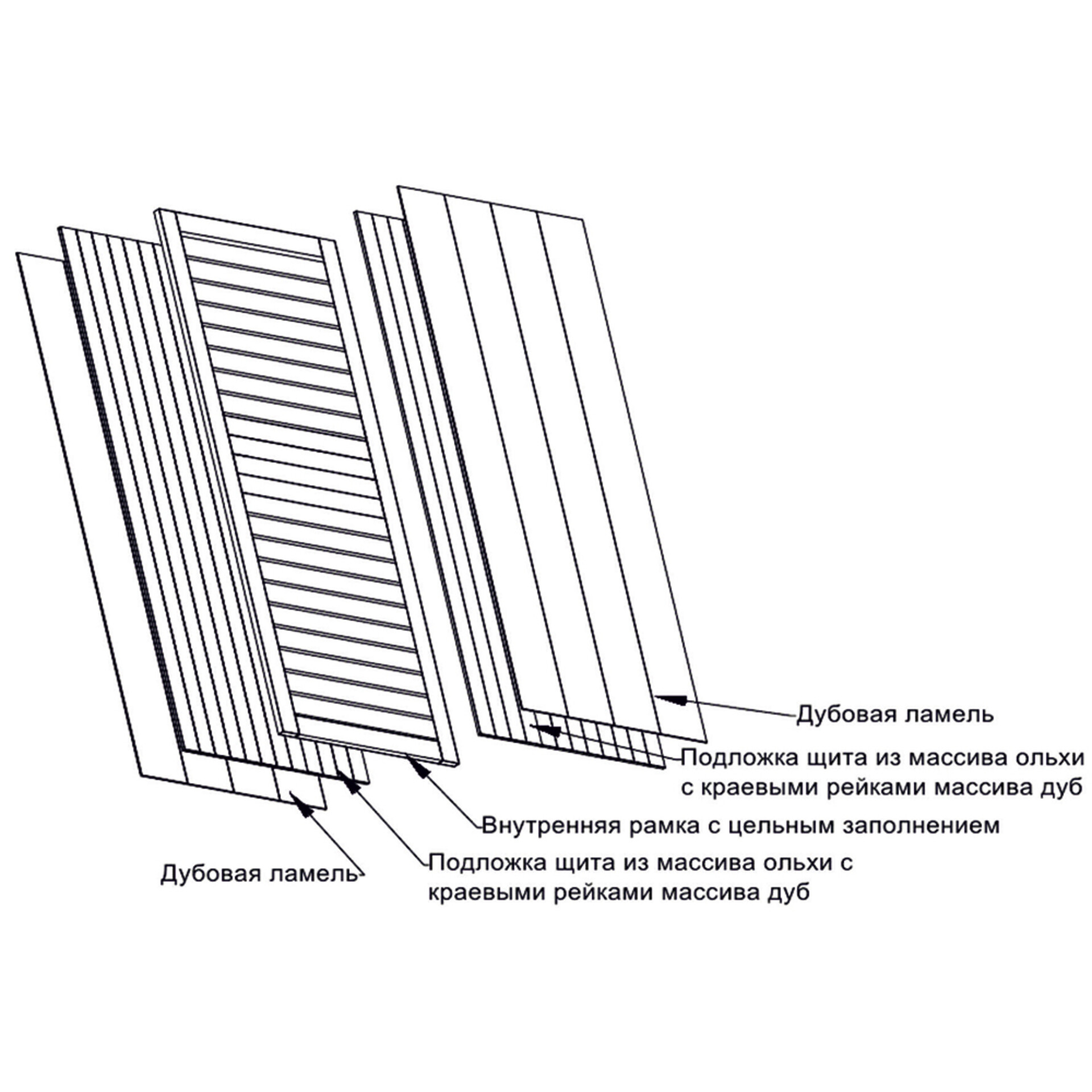 - Материал: массив лиственных пород: дуб, ольха.