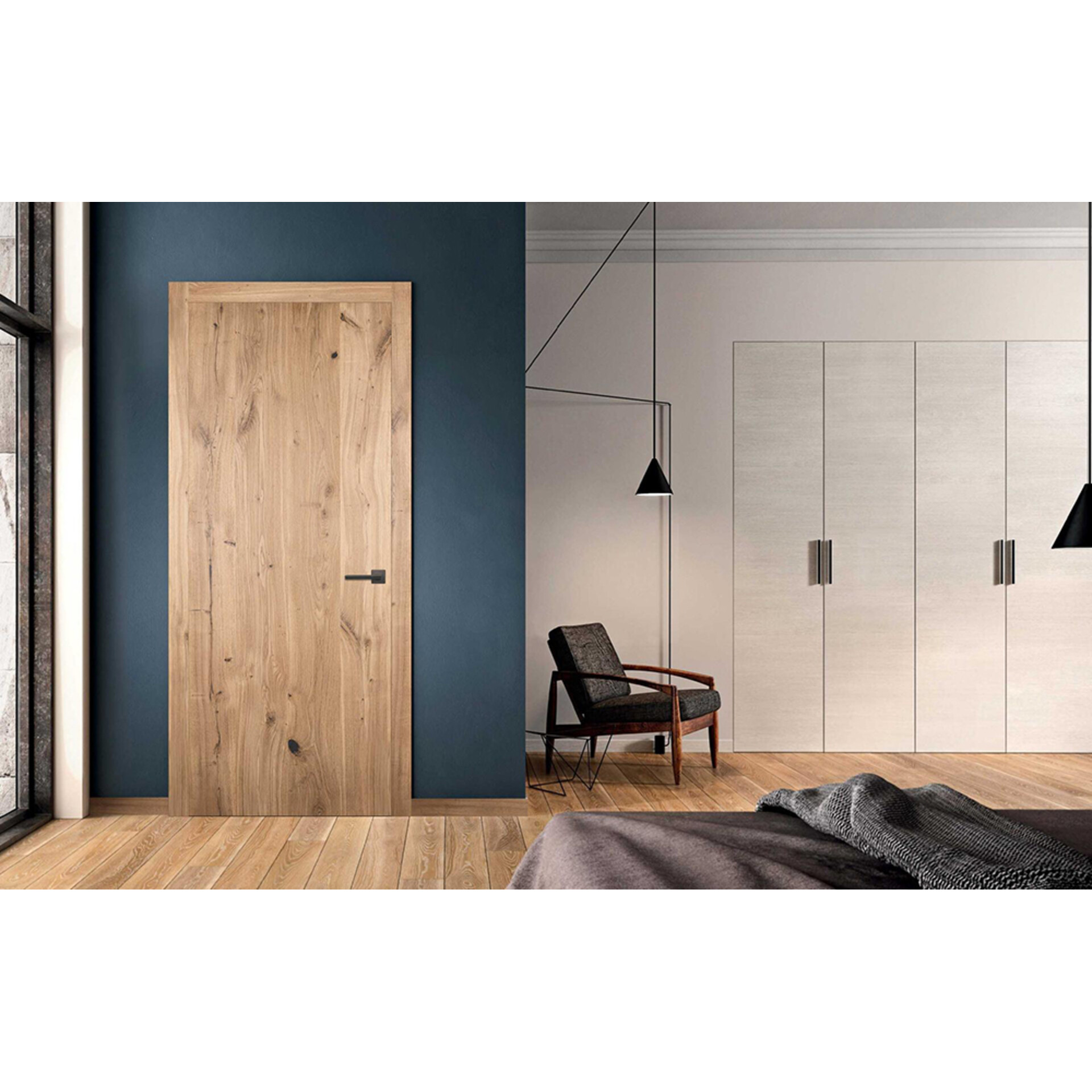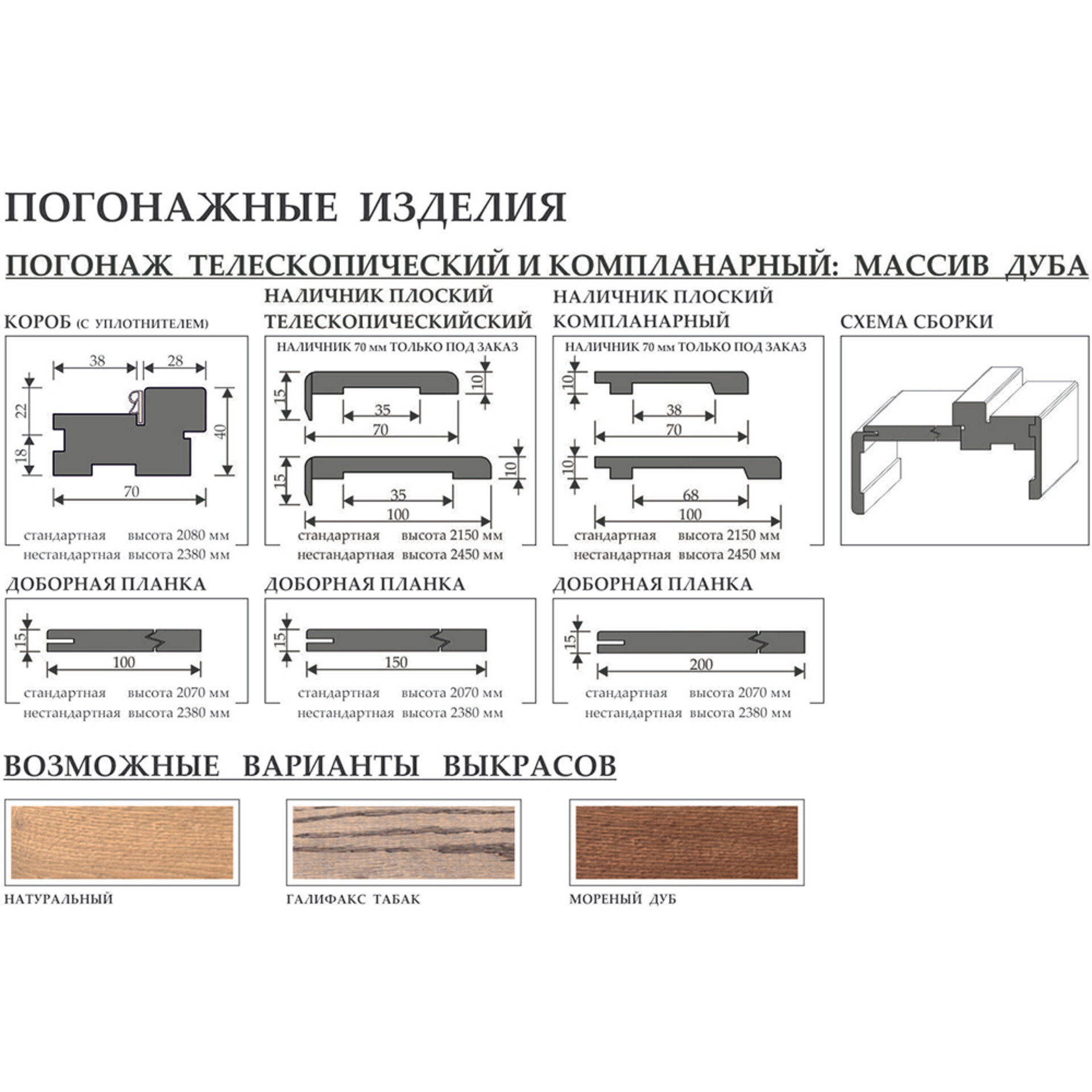 - Погонаж: коробка и наличник компланар - массив дуба, добор и наличник телескоп - шпон дуба.
