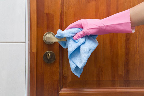 Также нужно периодически проводить протирку с помощью полироли на восковой основе, что обеспечит красивый глянцевый блеск и отталкивание пыли. В условиях нормальной температуры и влажности такие действия стоит проводить 1-2 раза в год. Если же дверь установлена, например, в ванной, эта периодичность повышается до 3-4 раз. Также помимо очистки необходимо проводить смазывание и регулировку механических элементов конструкции – защелки, замка, ручки и щеколды.