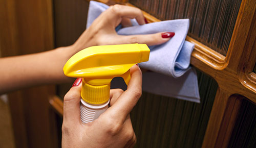 Следует раз в неделю протирать пыль, используя мягкую тряпку. Не рекомендуется использовать наждачную бумагу, скребки с металлическим покрытием или жесткие щетки, оставляющие на поверхности царапины. Для очистки не подходят абразивные средства и вещества, имеющие в составе кислоты.