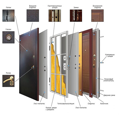 Входная дверь должна быть не только прочной и устойчивой к взлому, но и выполнять дополнительные функции. При ее выборе нужно предусмотреть и такие качества, как шумо- и теплоизоляция. Их уровень будет зависеть от ряда конструктивных элементов, среди которых: