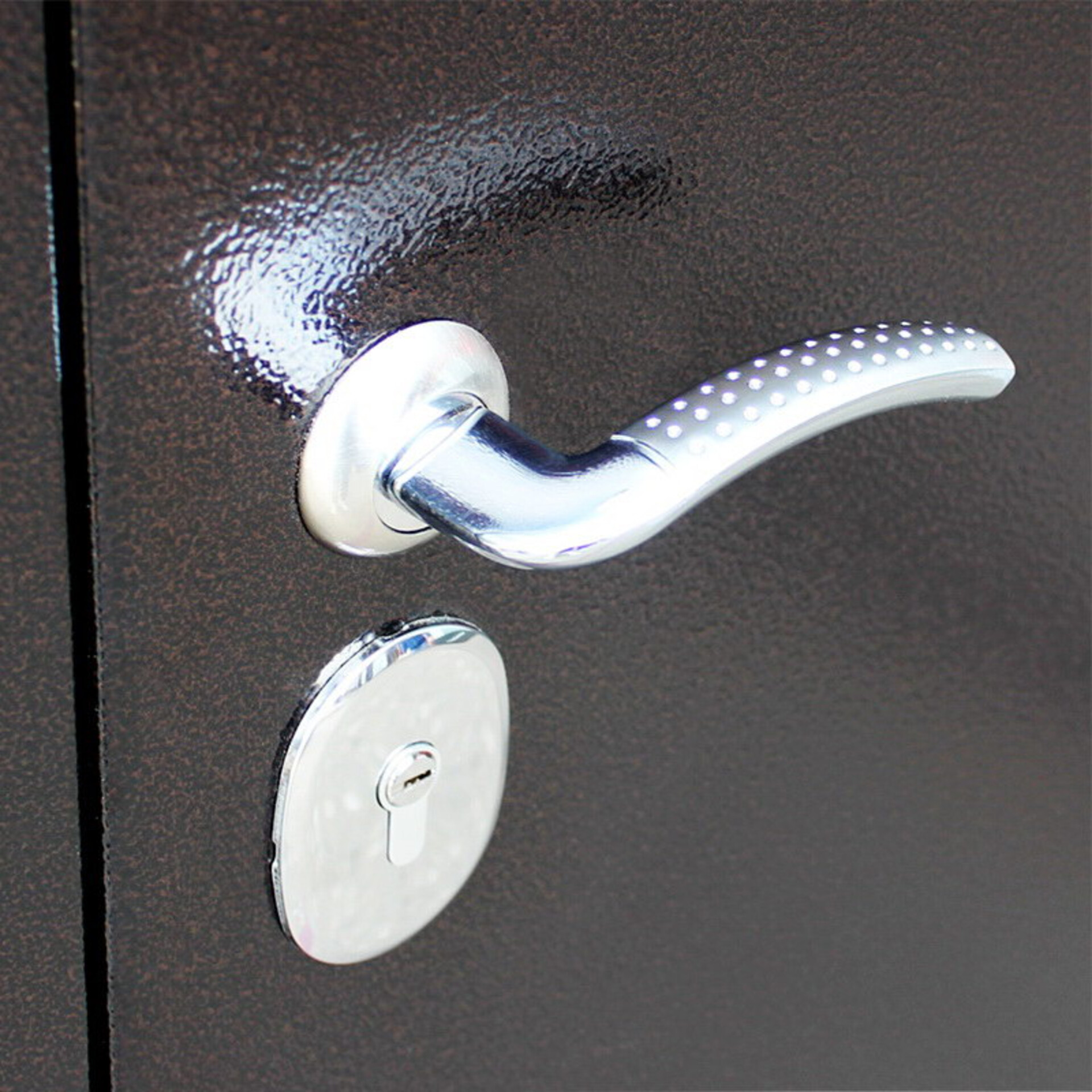 - Комплектация: Дверная ручка, цилиндр ключ-вертушка, глазок.