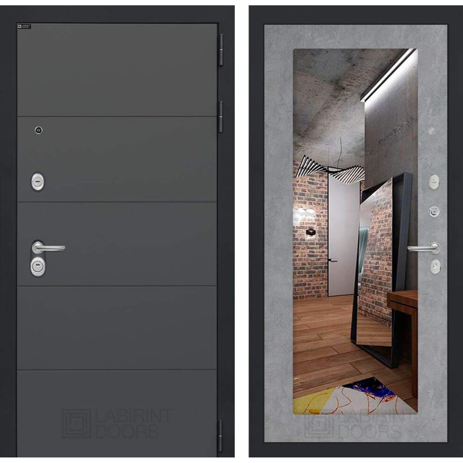 Входная дверь Лабиринт ART с зеркалом 18 - Бетон светлый