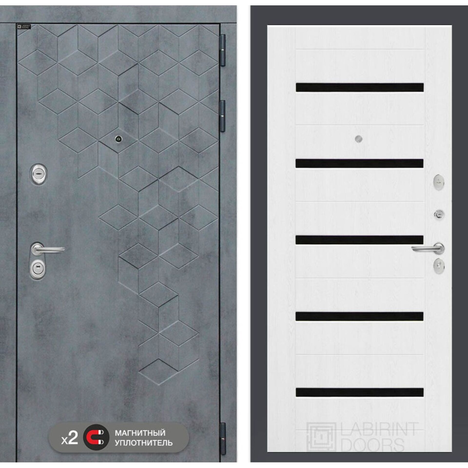 Входная дверь Лабиринт Бетон 01 - Белое дерево, стекло черное