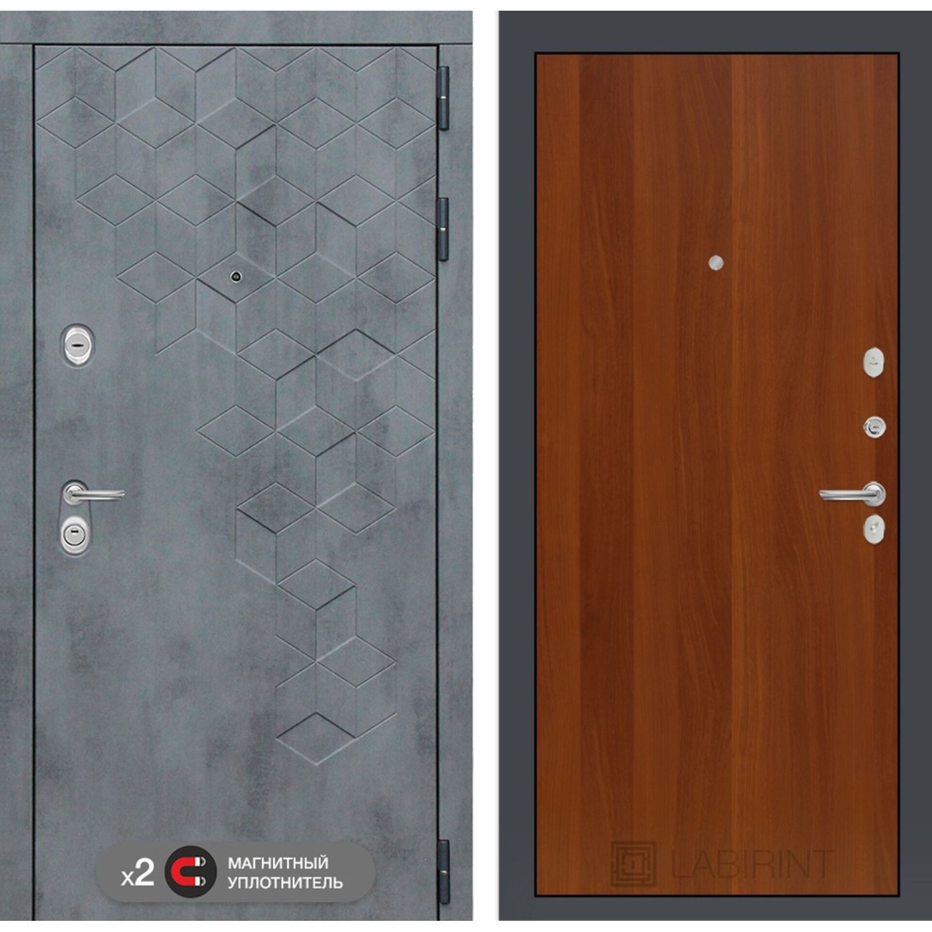 Входная дверь Лабиринт Бетон 05 - Итальянский орех - увеличенная звукоизоляция, максимальная герметичность, четвертый класс безопасности.