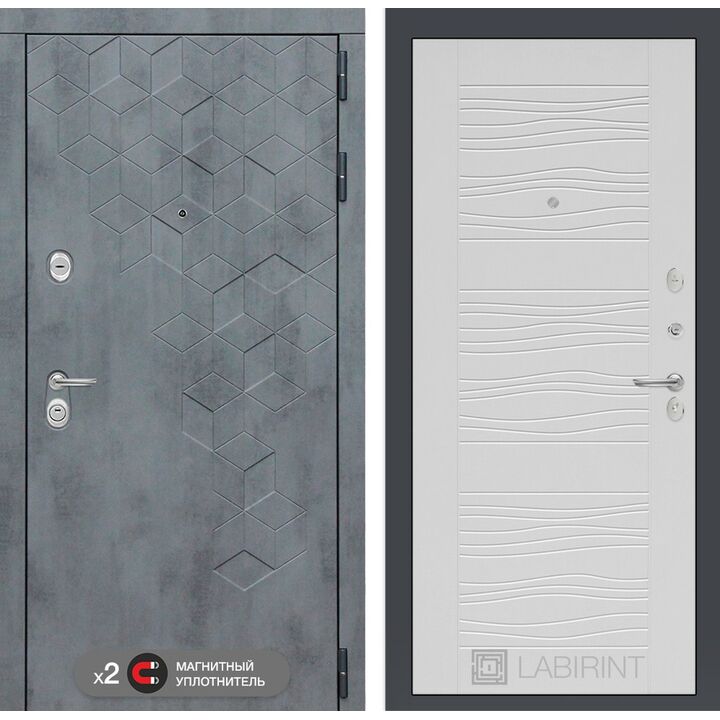 Входная дверь Лабиринт Бетон 06 - Белое дерево - увеличенная звукоизоляция, максимальная герметичность, четвертый класс безопасности.