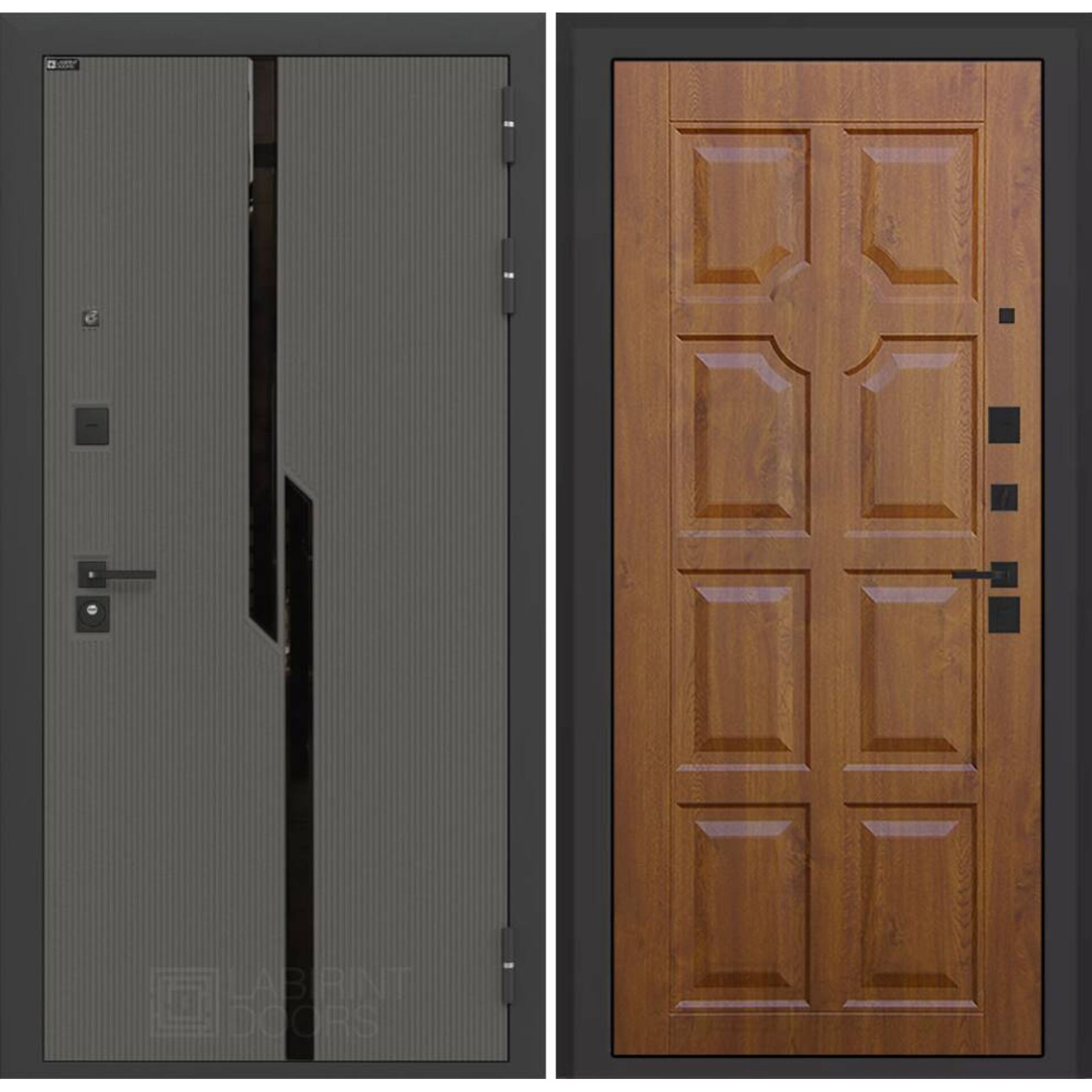 - Комплектация: Броненакладка, сувальдные накладки со шторками, ручка, ночная задвижка, глазок СБОКУ, эксцентрик, цилиндр ключ/вертушка черный