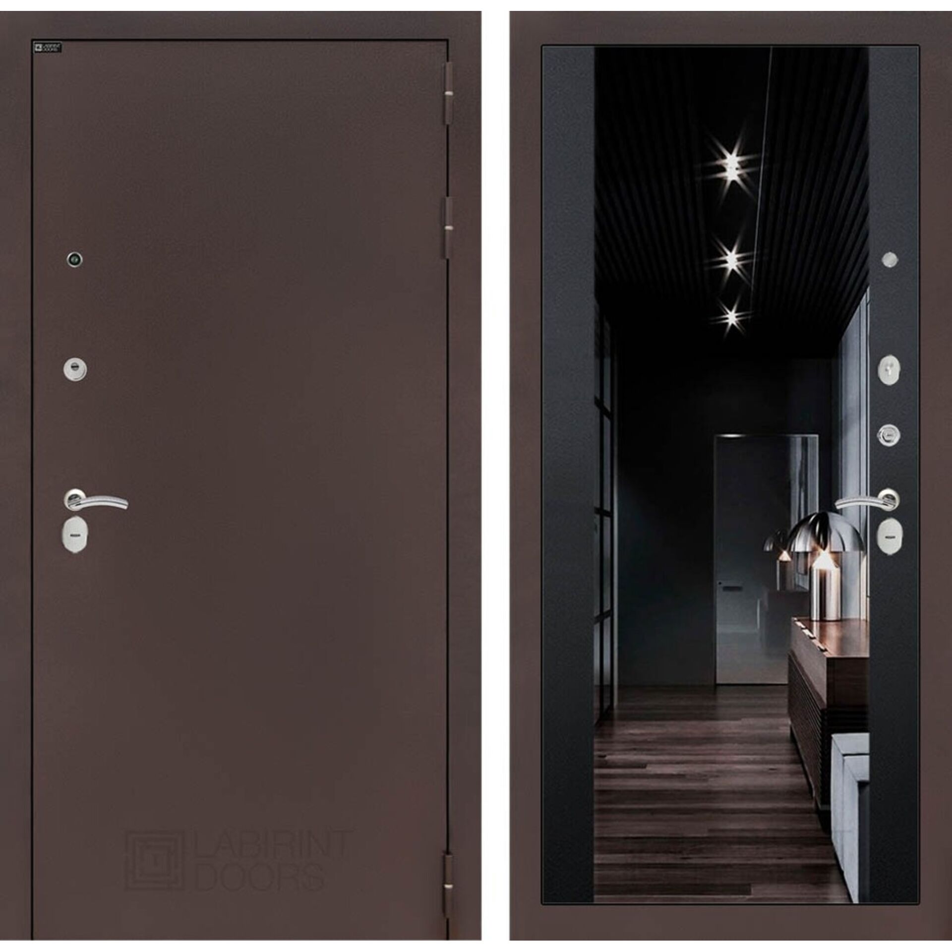 Входная дверь Лабиринт CLASSIC антик медный с зеркалом тонированным Максимум - Черный кварц
