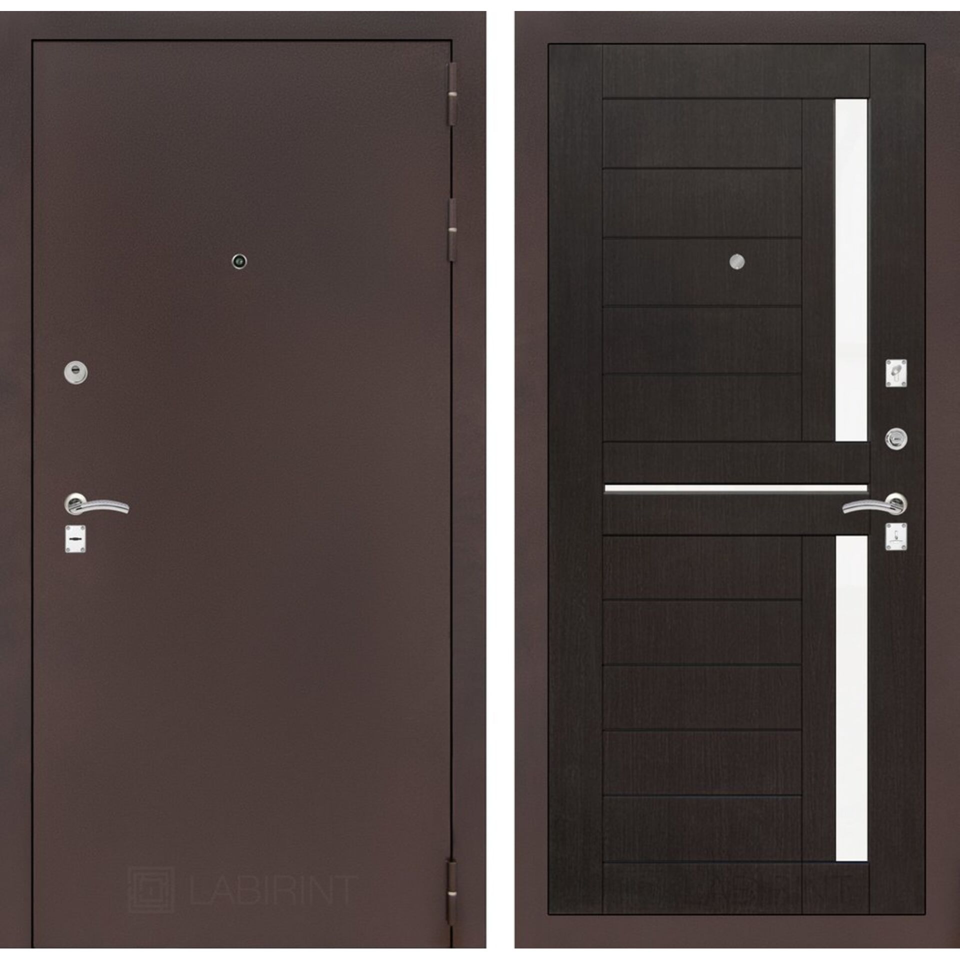Входная дверь Лабиринт CLASSIC антик медный 02 - Венге - дверь с практичным и устойчивым покрытием.