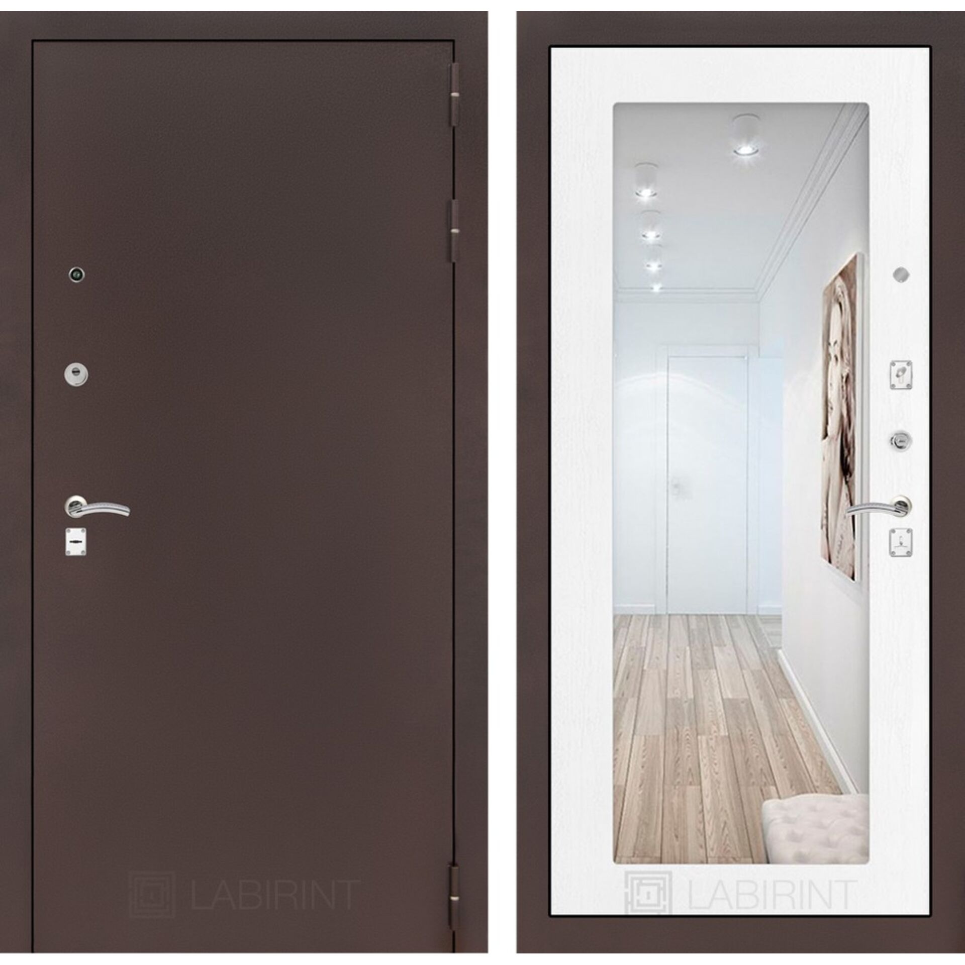 Входная дверь Лабиринт CLASSIC антик медный с зеркалом 18 - Белое дерево