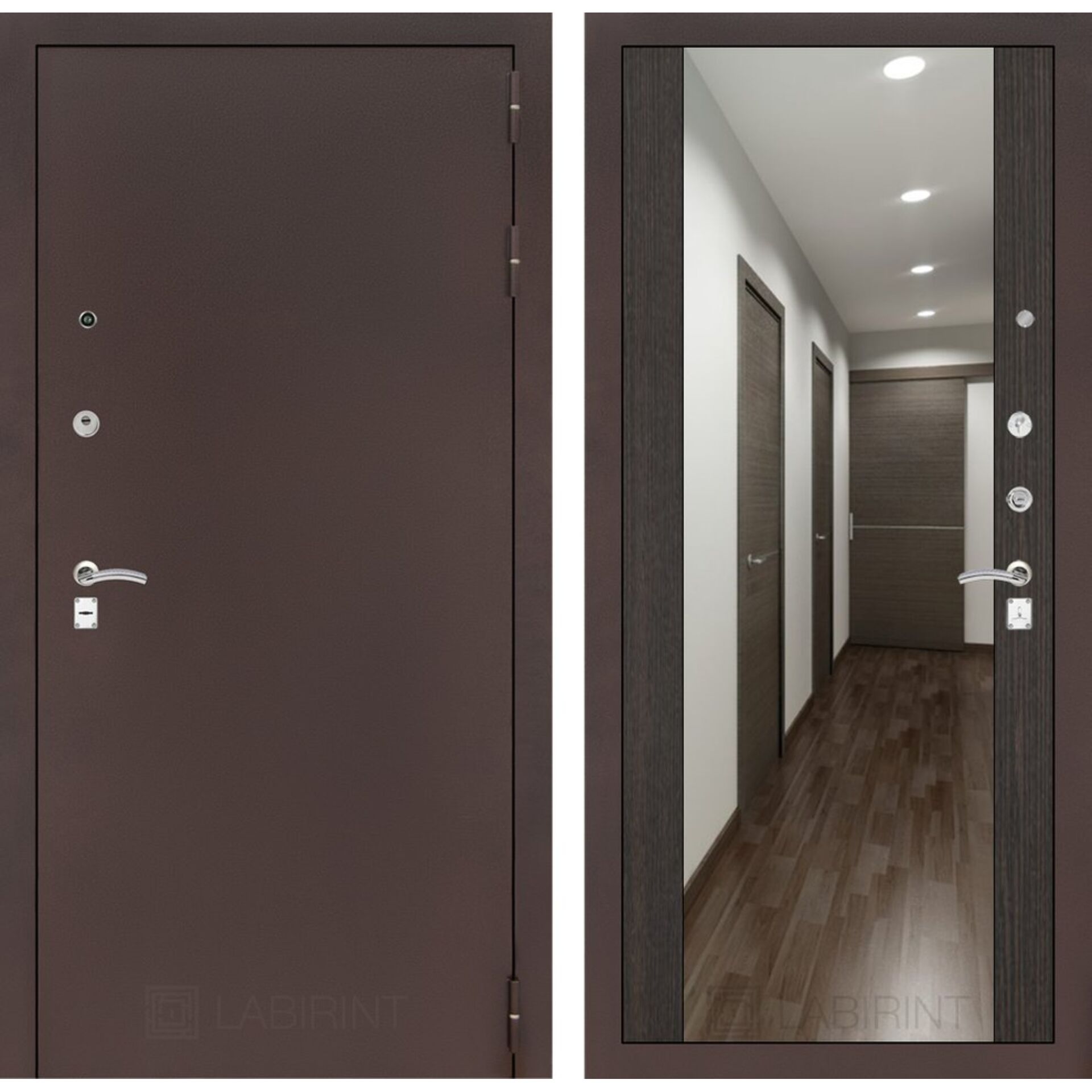 Входная дверь Лабиринт CLASSIC антик медный с зеркалом Максимум - Венге - дверь с практичным и устойчивым покрытием.