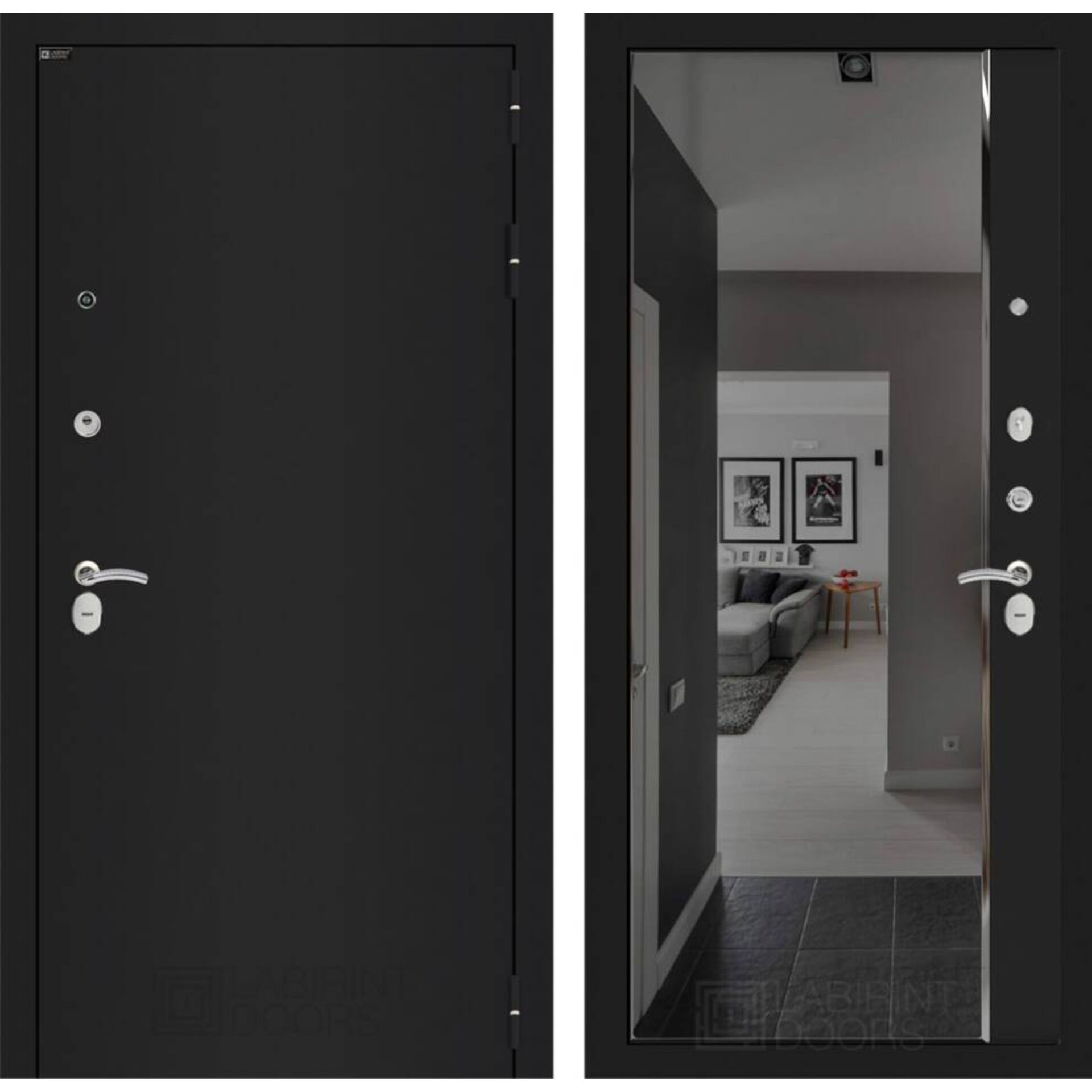Входная дверь Лабиринт CLASSIC шагрень черная с зеркалом Панорама с тонировкой - Черный кварц - дверь с практичным и устойчивым покрытием.