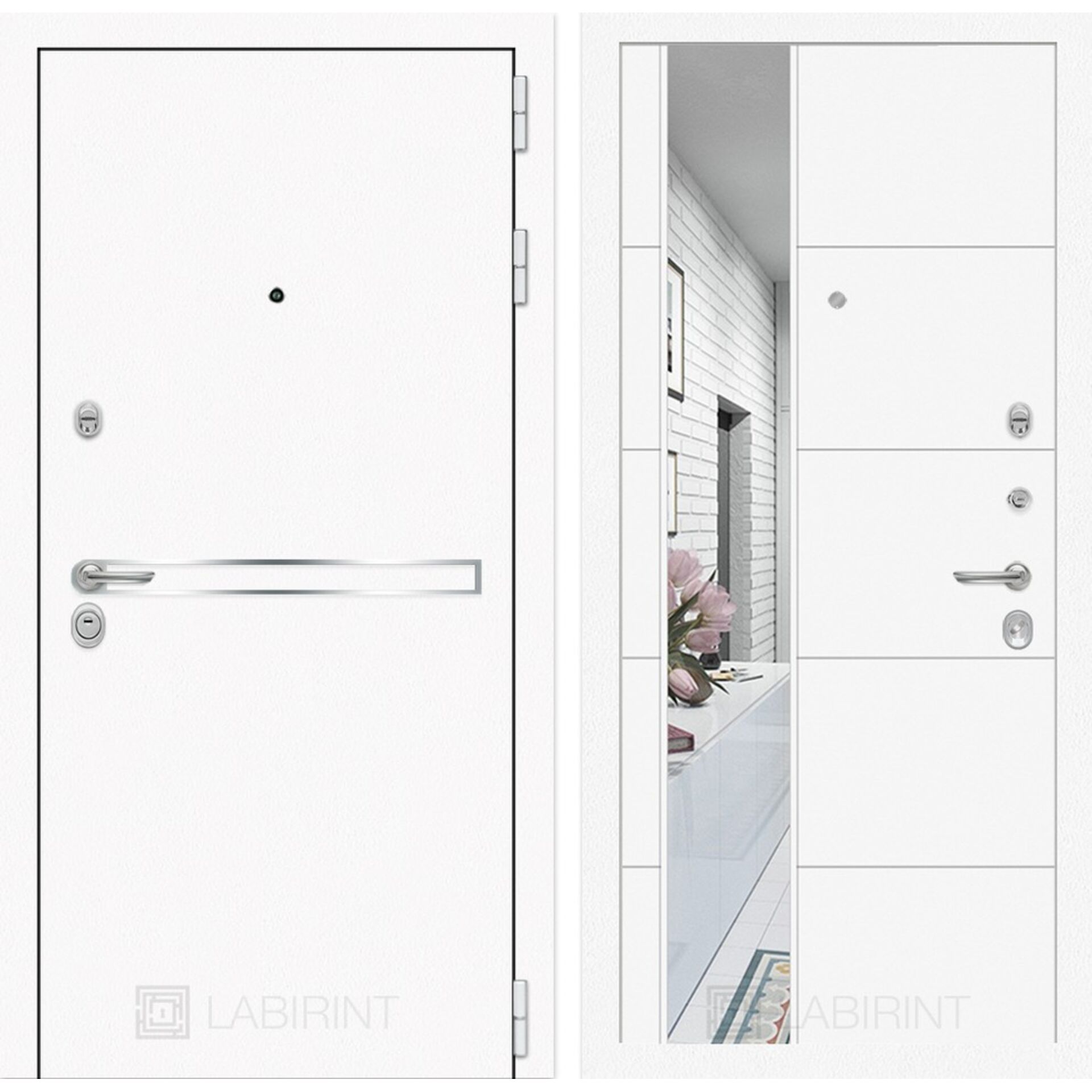 Входная дверь Лабиринт Лайн WHITE с зеркалом 19 - Белый софт