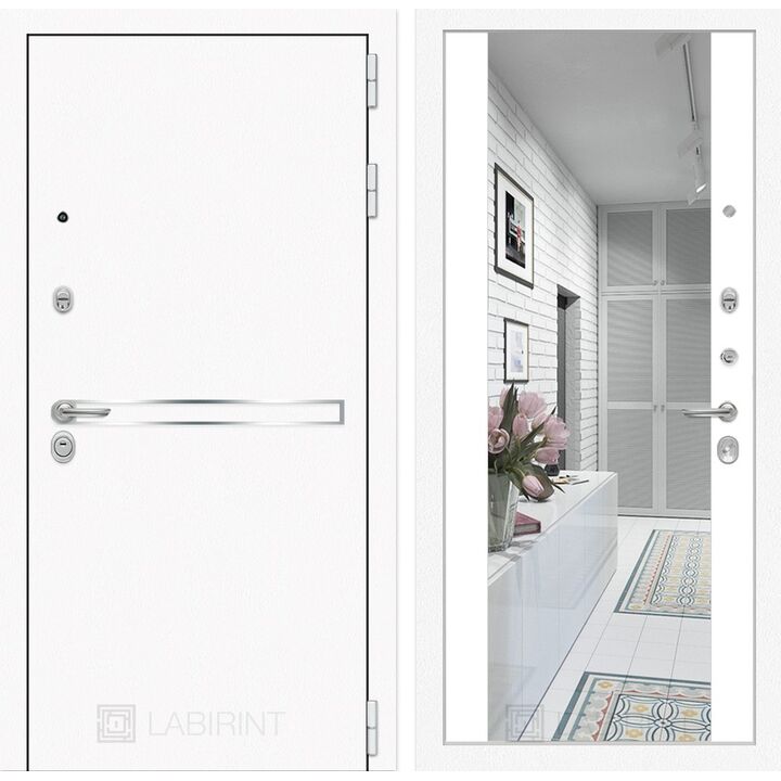 Входная дверь Лабиринт Лайн WHITE с зеркалом Максимум - Белый софт