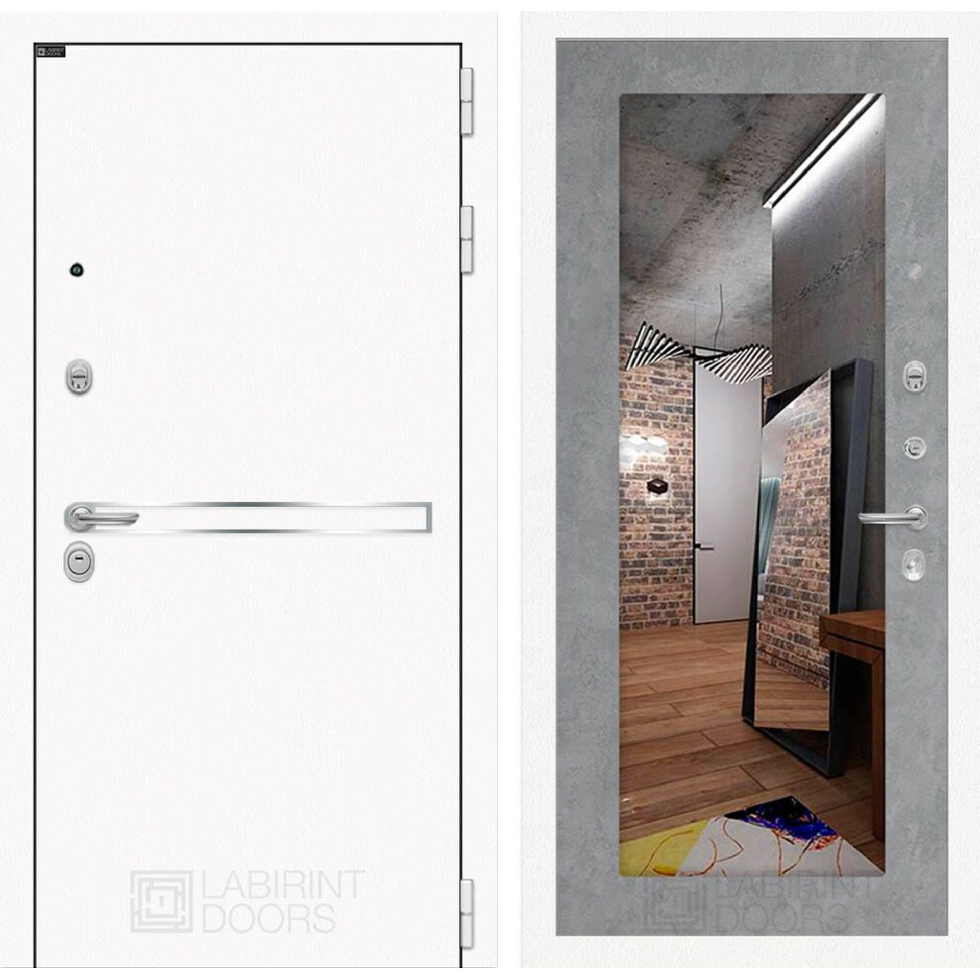Входная дверь Лабиринт Лайн WHITE с зеркалом 18 - Бетон светлый