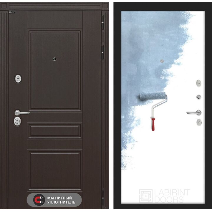 Входная дверь Лабиринт Мегаполис 28 - Грунт под покраску - увеличенная звукоизоляция и герметичность, надежные замки четвертого класса безопасности.