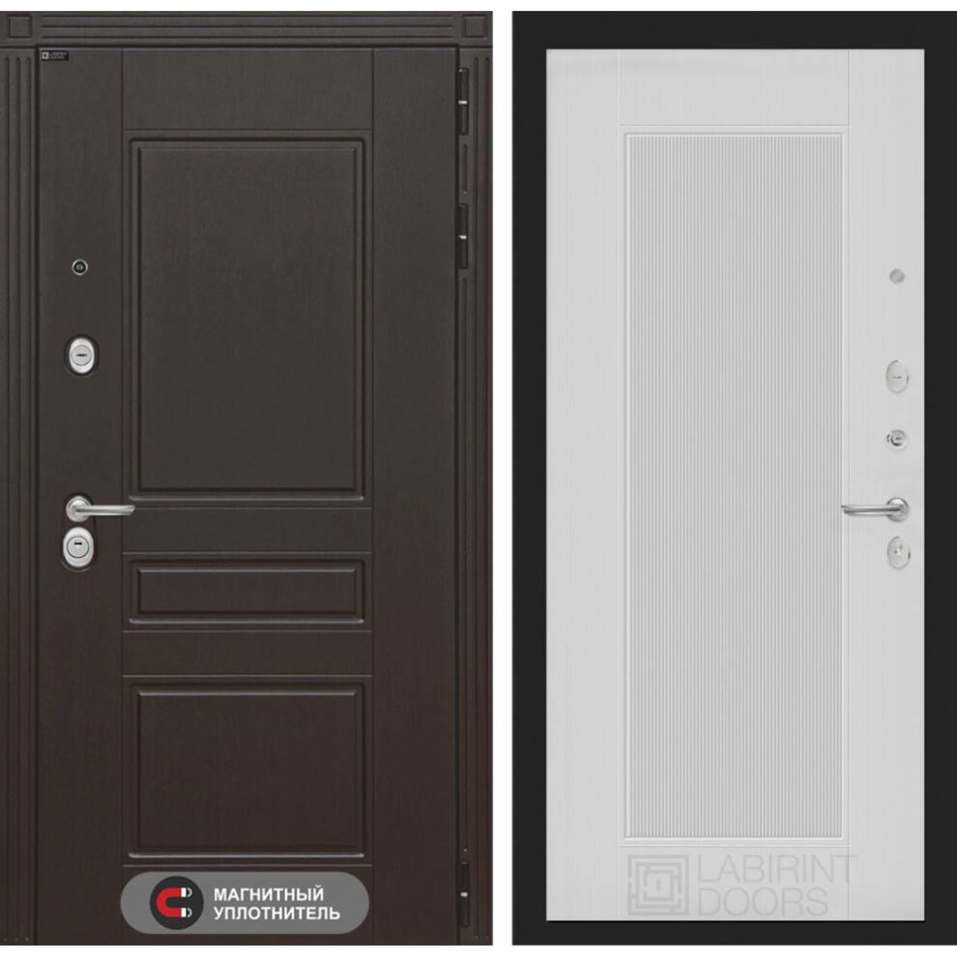 Входная дверь Лабиринт Мегаполис 30 - Белый рельеф софт - увеличенная звукоизоляция и герметичность, надежные замки четвертого класса безопасности.