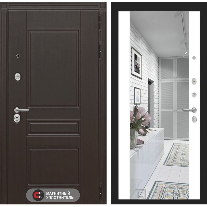 Входная дверь Лабиринт Мегаполис с зеркалом Максимум - Белый софт