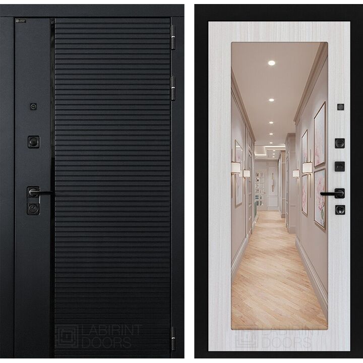 Входная дверь Лабиринт PIANO с зеркалом 18 - Сандал белый - современная утепленная дверь с хорошей шумоизоляцией