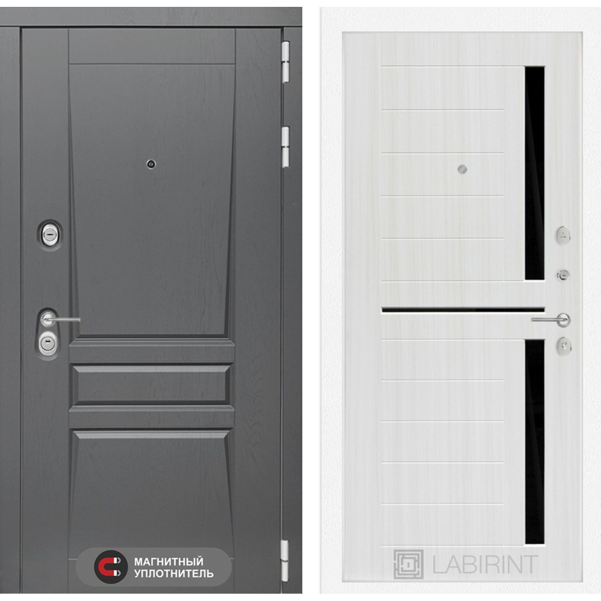 Входная дверь Лабиринт Платинум 02 - Сандал белый, стекло черное