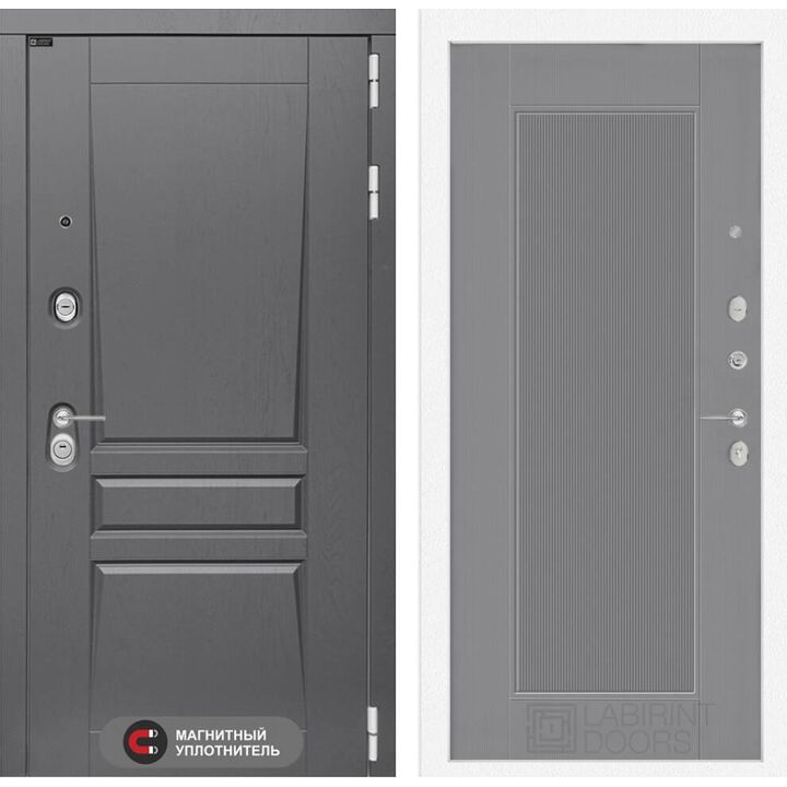 Входная дверь Лабиринт Платинум 30 - Серый рельеф софт - утепленная дверь с хорошей шумоизоляцией