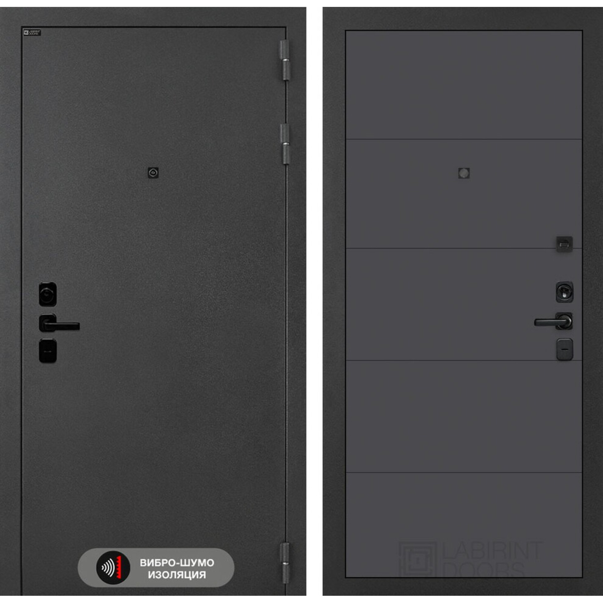 Входная дверь Лабиринт Соналаб 13 - Графит софт - дверь с использованием акустического вибропоглощающего материала.