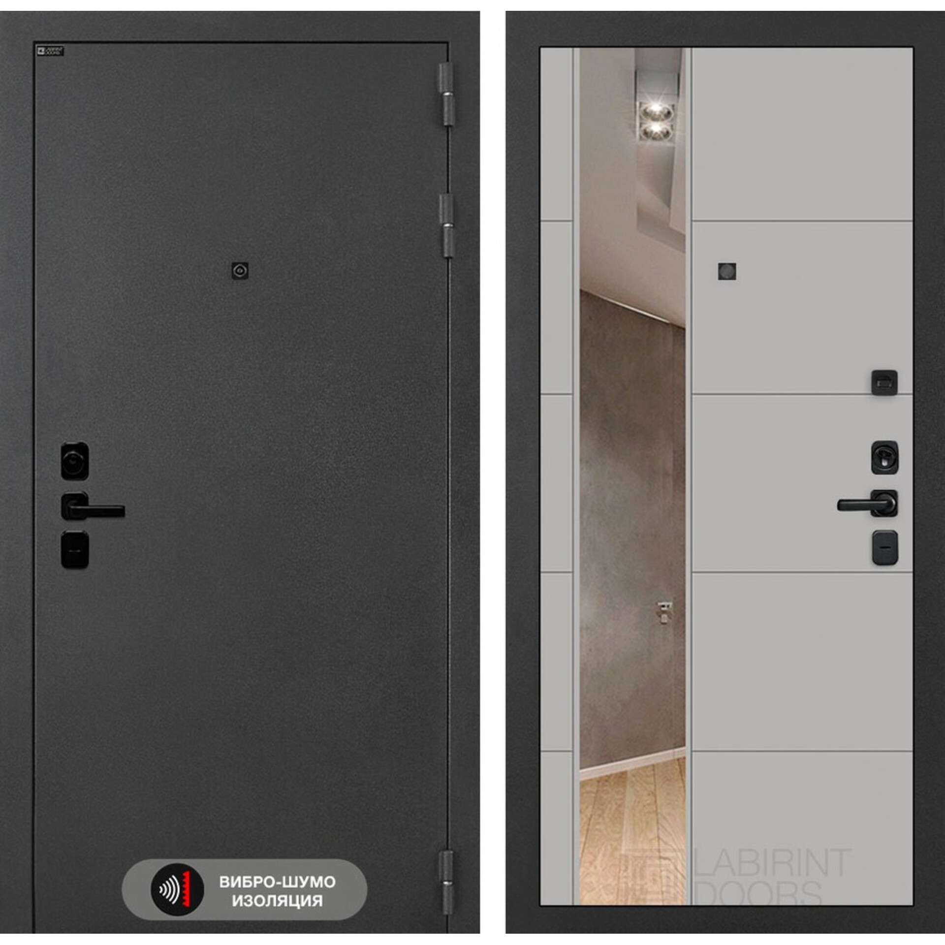 Входная дверь Лабиринт Соналаб с зеркалом 19 - Грей софт - дверь с использованием акустического вибропоглощающего материала.