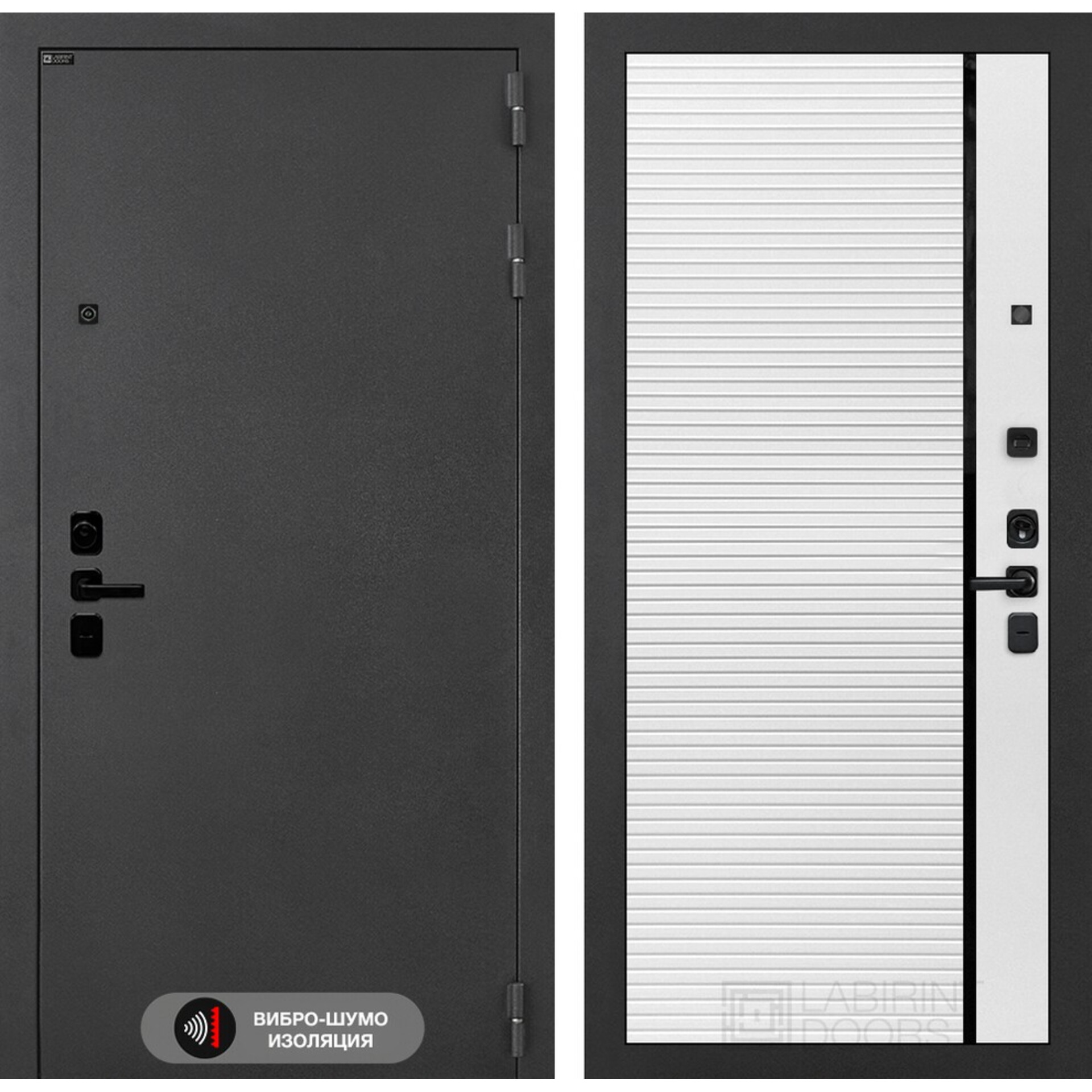 Входная дверь Лабиринт Соналаб 22 - Белый софт, черная вставка - дверь с использованием акустического вибропоглощающего материала.