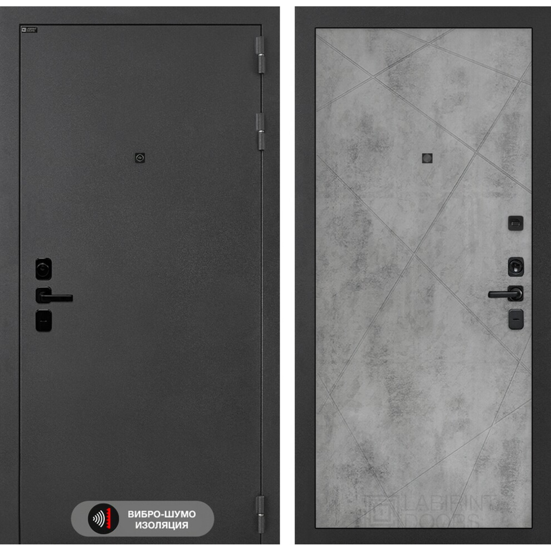 Входная дверь Лабиринт Соналаб 24 - Бетон светлый - дверь с использованием акустического вибропоглощающего материала.