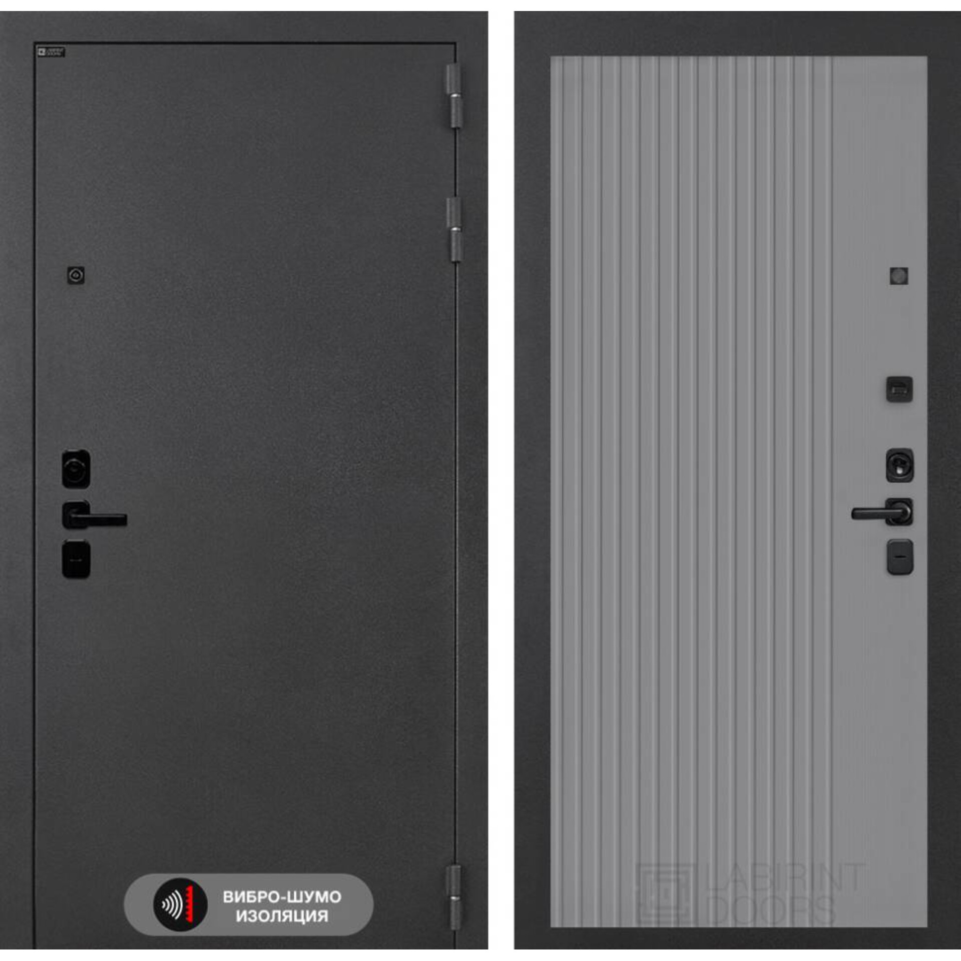 Входная дверь Лабиринт Соналаб 29 - Серый рельеф софт - дверь с использованием акустического вибропоглощающего материала.