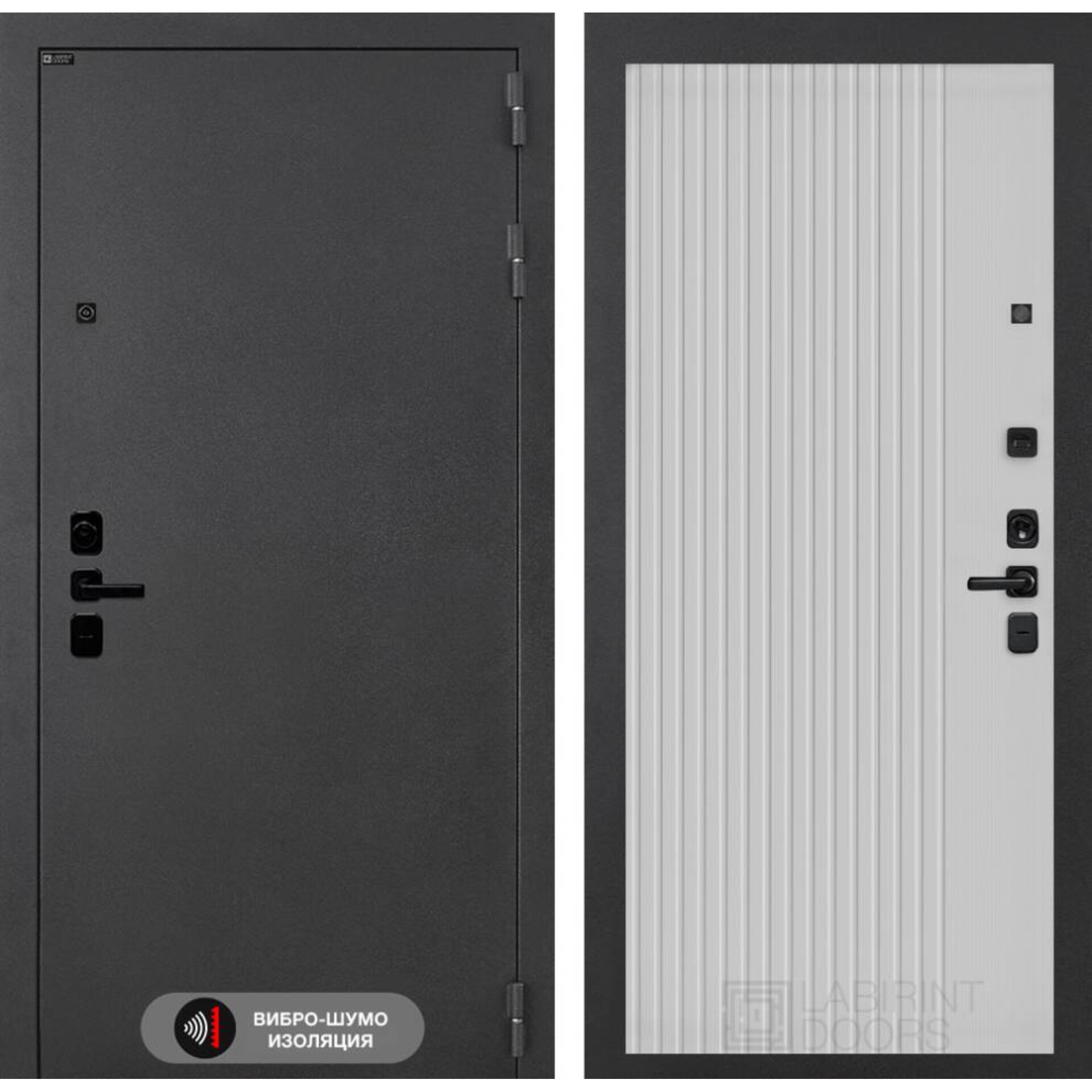 Входная дверь Лабиринт Соналаб 29 - Белый рельеф софт - дверь с использованием акустического вибропоглощающего материала.
