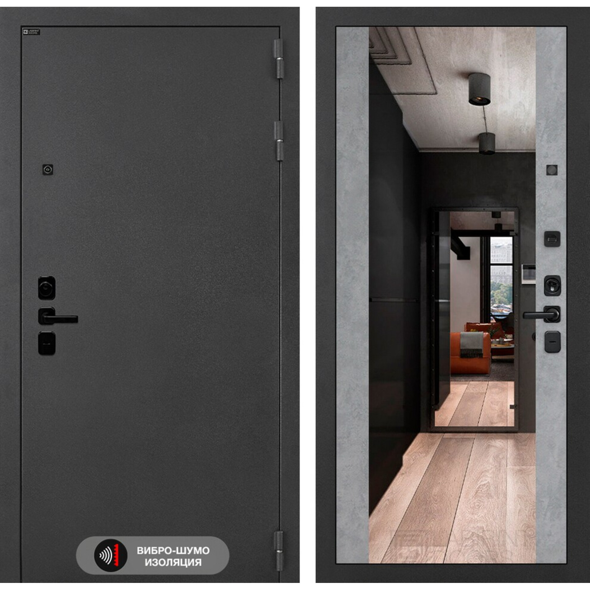 Входная дверь Лабиринт Соналаб с зеркалом Максимум - Бетон светлый - дверь с использованием акустического вибропоглощающего материала.