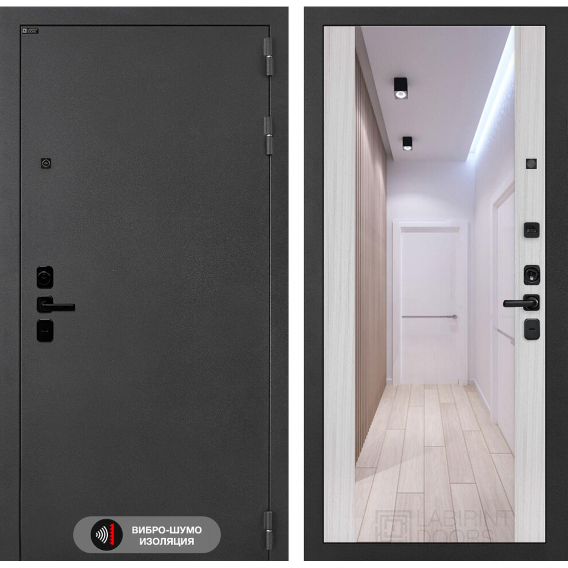 Входная дверь Лабиринт Соналаб с зеркалом Максимум - Сандал белый - дверь с использованием акустического вибропоглощающего материала.