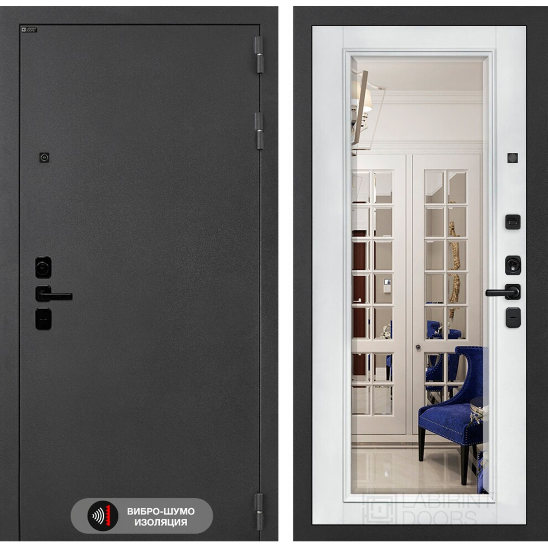 Входная дверь Лабиринт Соналаб с зеркалом Фацет - Белый софт - дверь с использованием акустического вибропоглощающего материала.