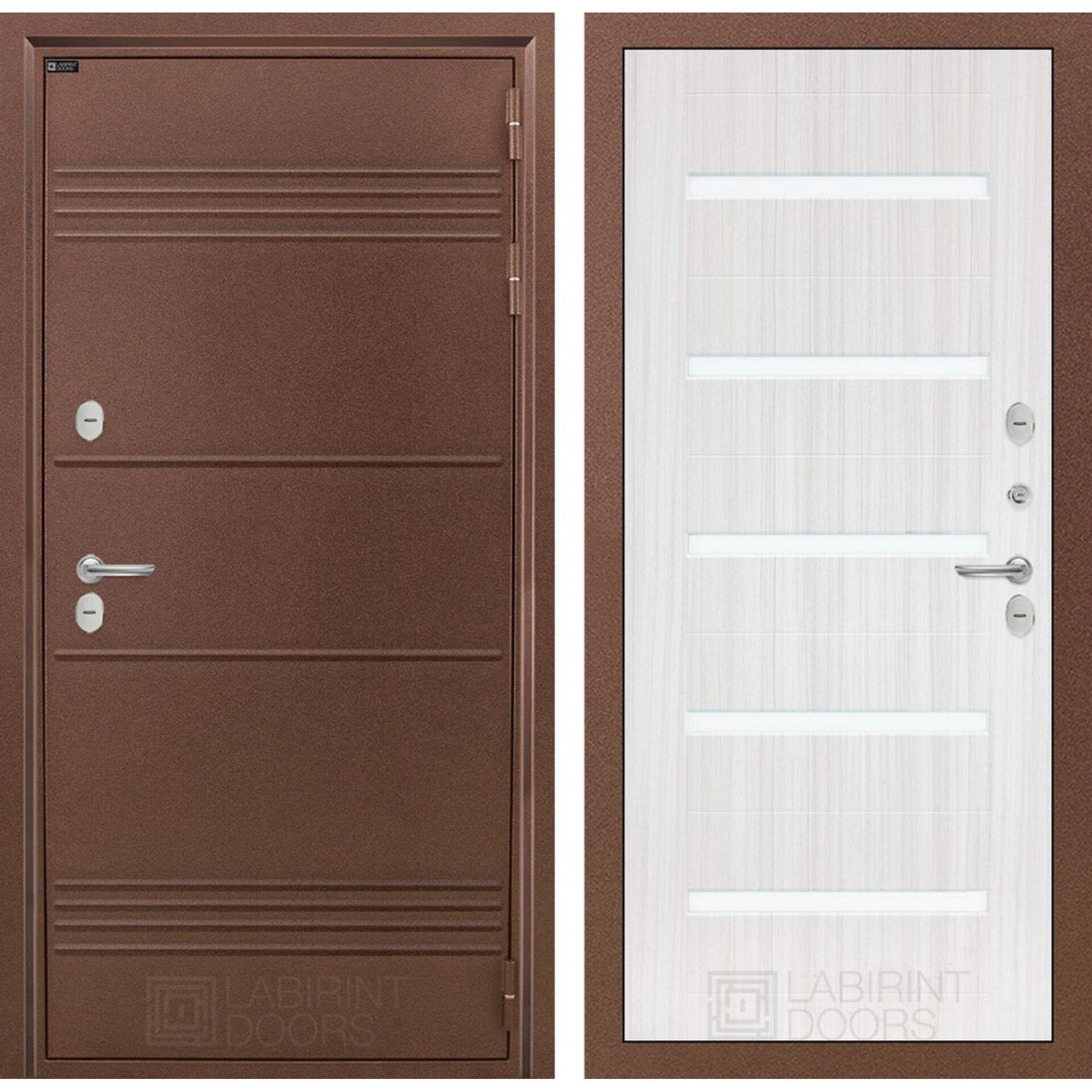 Входная дверь Лабиринт Термо Лайт 01 - Сандал белый, стекло белое