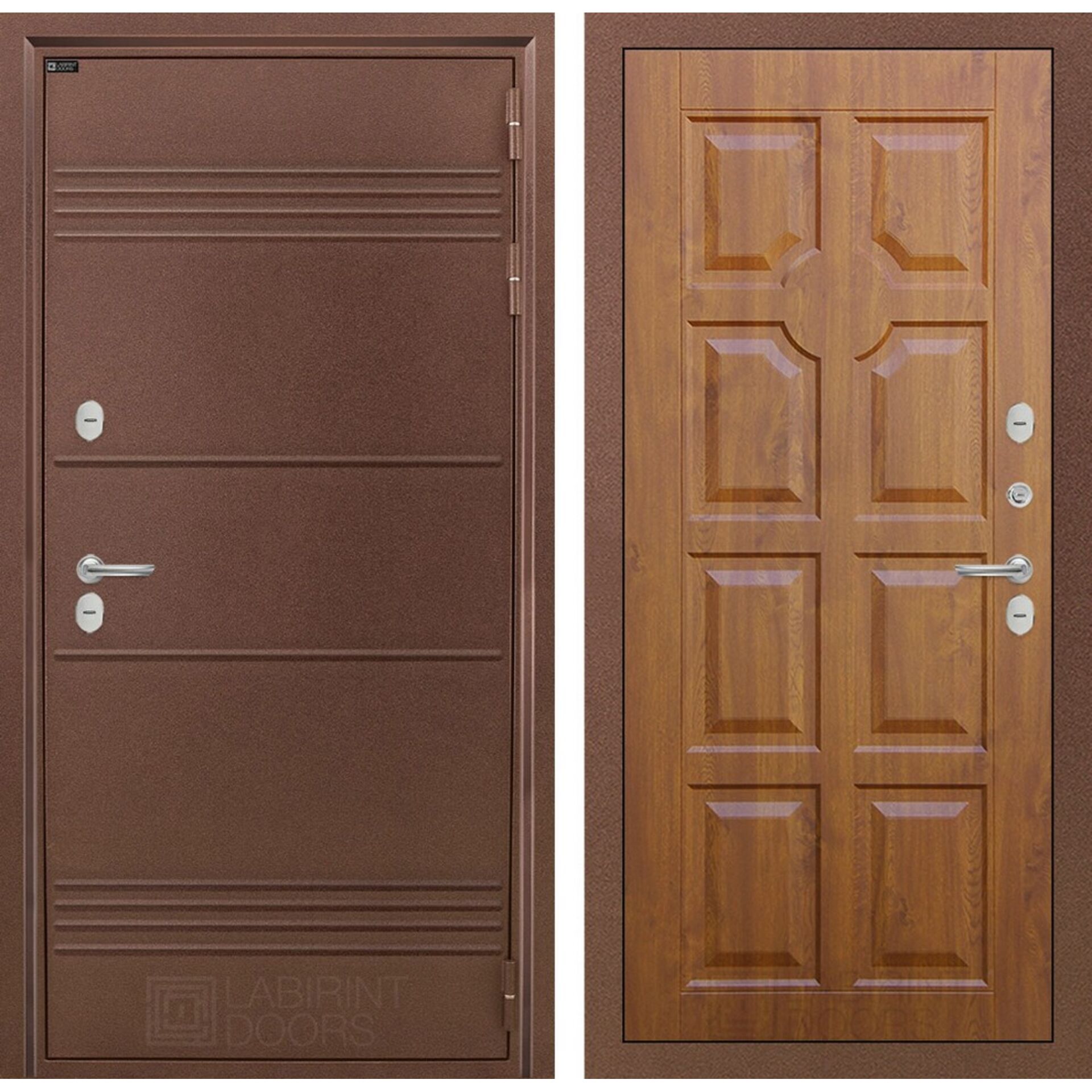 Входная дверь Лабиринт Термо Лайт 17 - Золотой дуб - уличная дверь с технологией терморазрыва разработана специально для установки в частный дом, защищает от морозов и наледи, влажности и коррозии, шума и сквозняков.