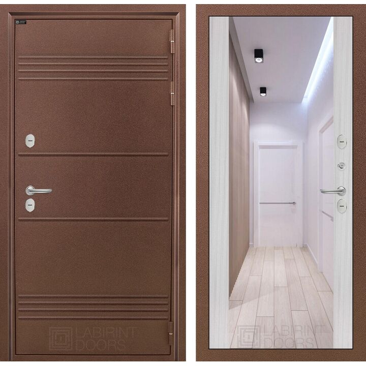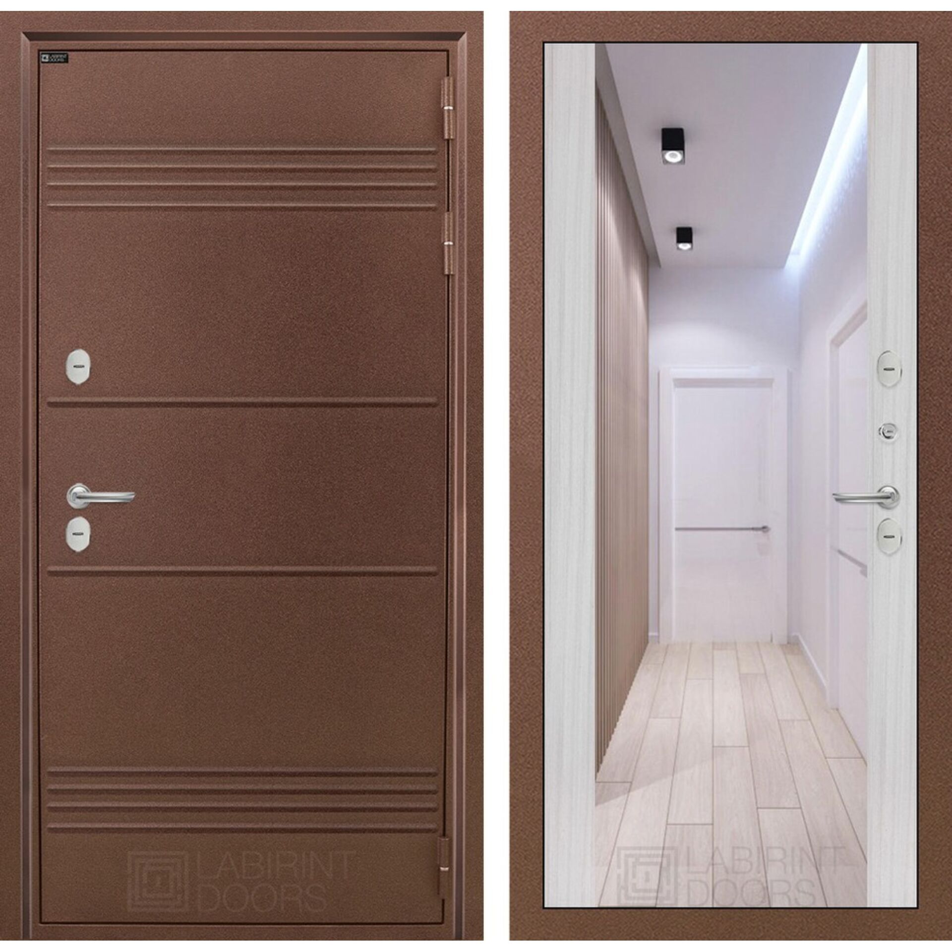 Входная дверь Лабиринт Термо Лайт с зеркалом Максимум - Сандал белый