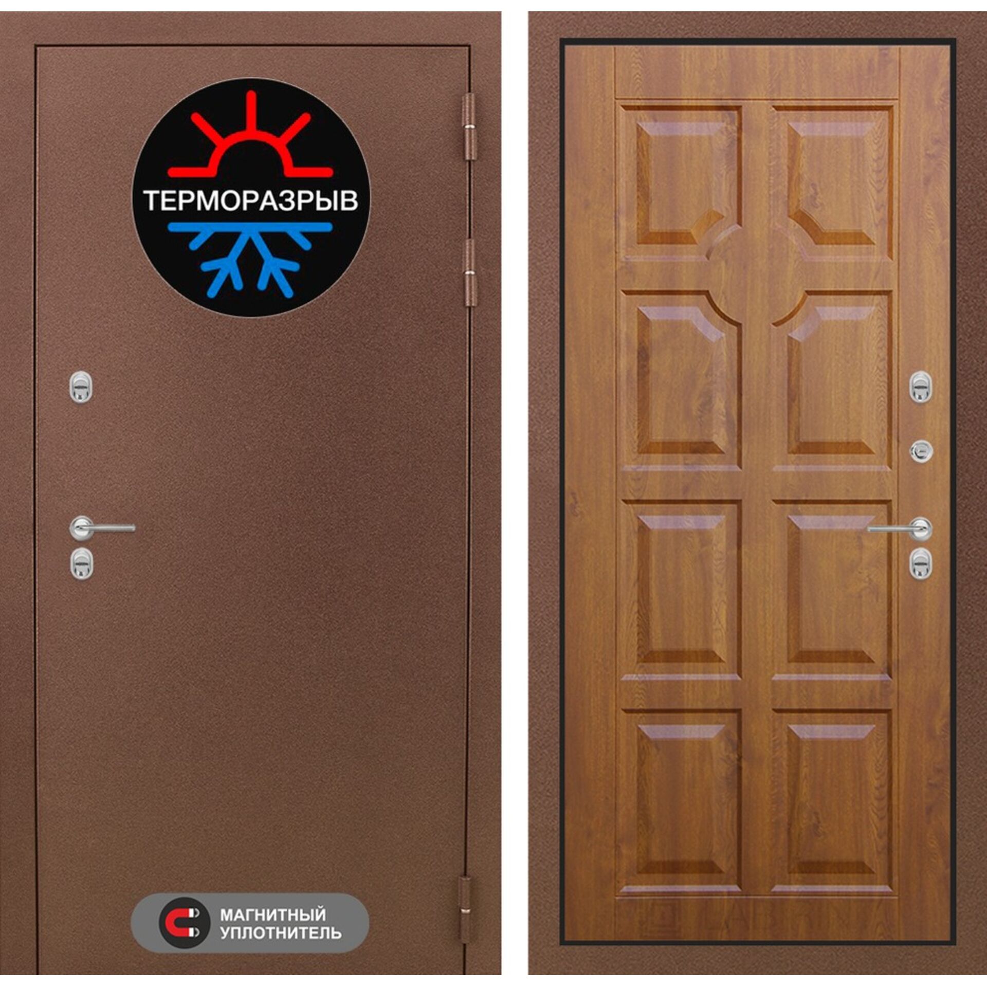 Входная дверь Лабиринт Термо Магнит 17 - Золотой дуб - уличная дверь с технологией терморазрыва разработана специально для установки в частный дом, защищает от морозов и наледи, влажности и коррозии, шума и сквозняков.