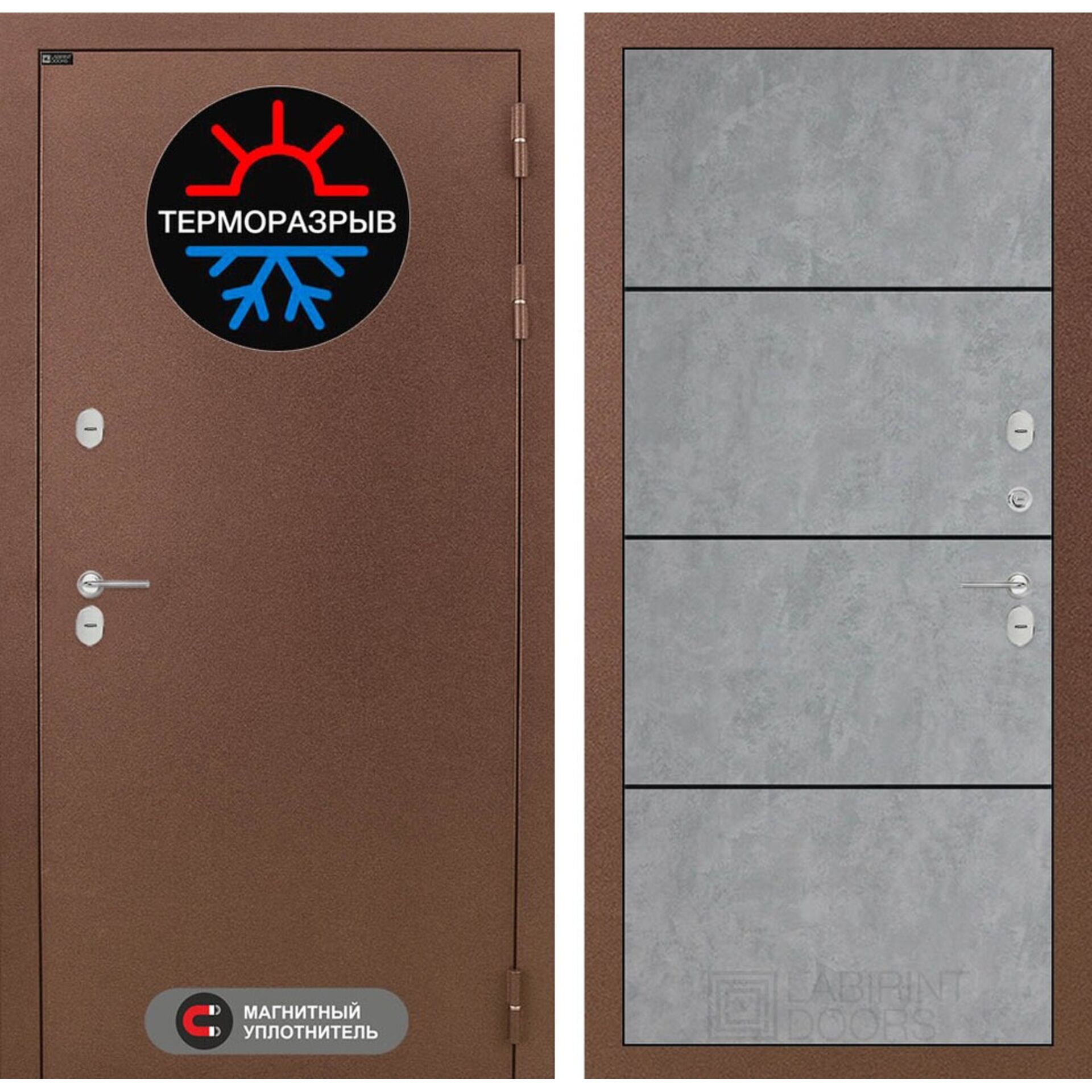 Входная дверь Лабиринт Термо Магнит 25 - Бетон светлый, черный молдинг