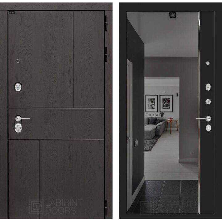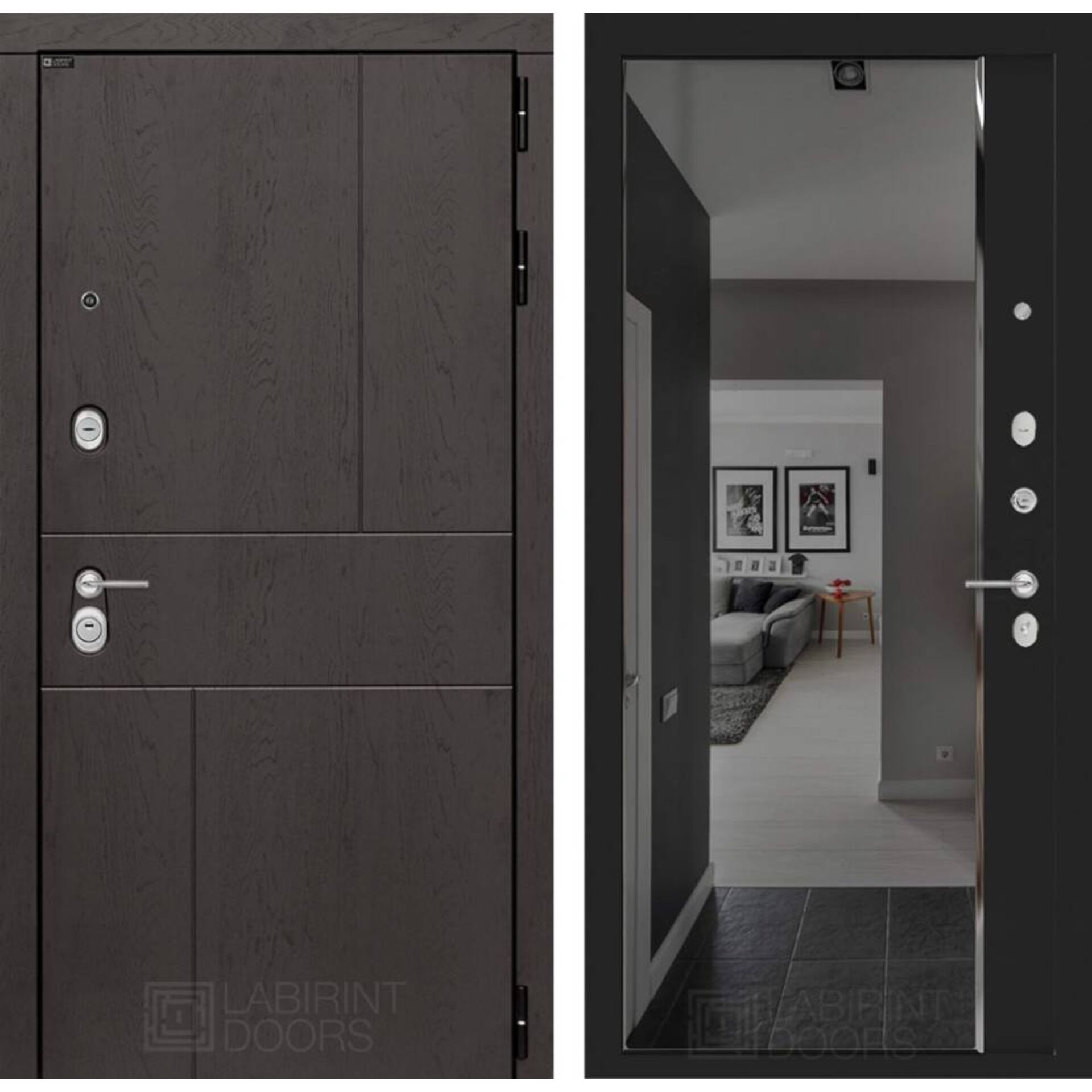 Входная дверь Лабиринт URBAN с зеркалом Панорама с тонировкой - Черный кварц - современная утепленная дверь с хорошей шумоизоляцией.