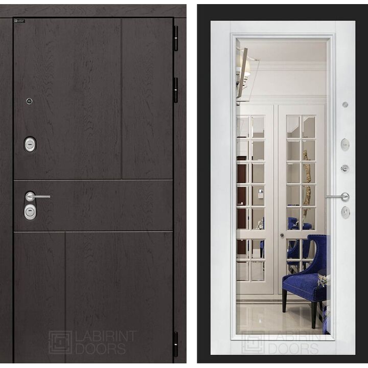 Входная дверь Лабиринт URBAN с зеркалом Фацет - Белый софт