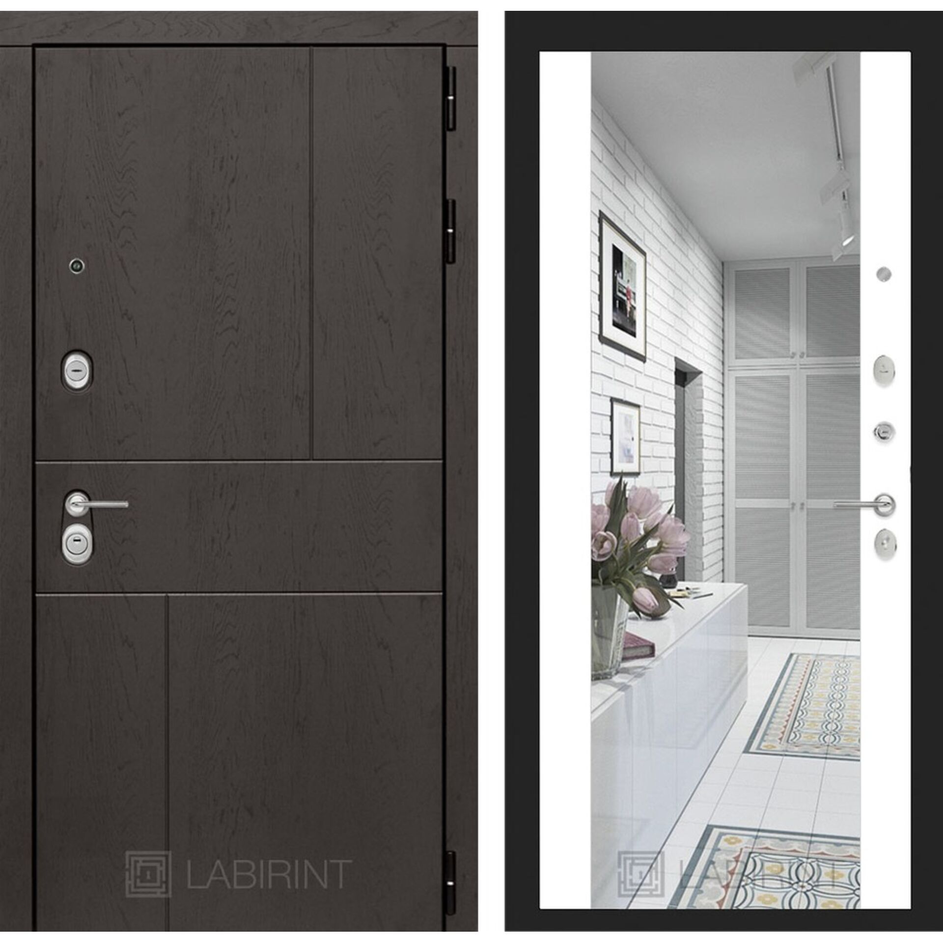 Входная дверь Лабиринт URBAN с зеркалом Максимум - Белый софт