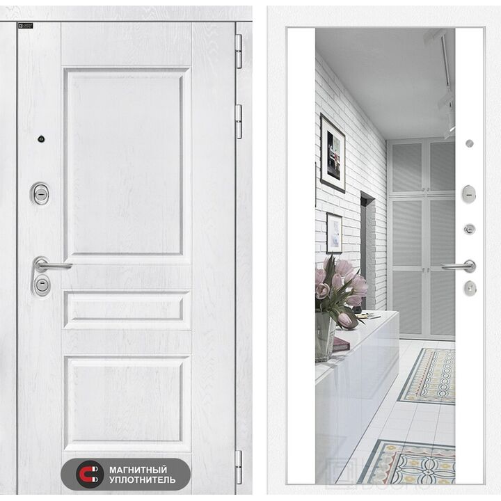 Входная дверь Лабиринт VERSAL с зеркалом Максимум - Белый софт
